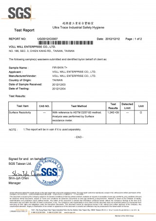 FIR-SKIN SGS REPORT - Surface Resistivity